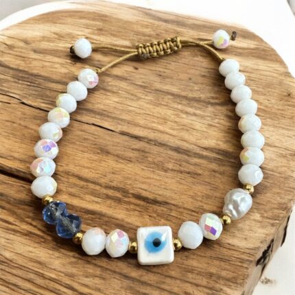 Χειροποίητο βραχιόλι με κρυσταλλάκια ,μακραμέ και μοτίφ σταυρός.